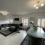 Appartement de type F4 situé au 1er étage d’un immeuble Avenue du Général de Gaulle à Courcelles-Chaussy, composé d’un salon ouvert sur une cuisine meublée, un dégagement, un cellier, deux chambres, un bureau, un wc, une salle d’eau.