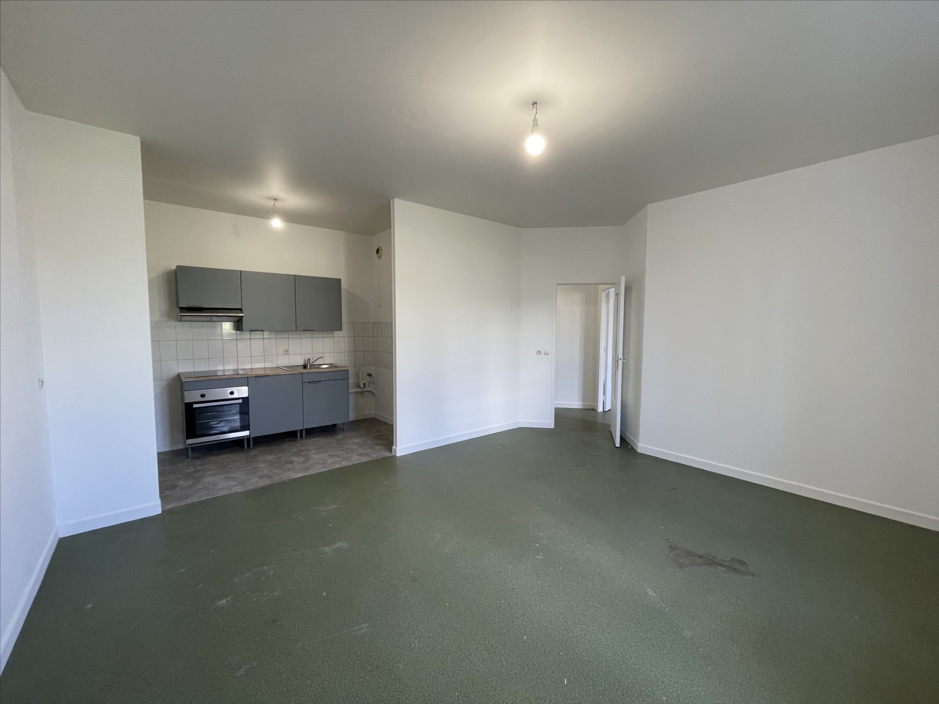 Il est composé d’une entrée, d’un salon ouvert sur cuisine, d’une chambre, d’une salle de douche et d’un WC.