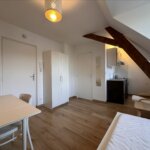 Au 5ème et dernier étage d’un immeuble sans ascenseur situé place du Général de Gaulle à METZ. Studio intégralement meublé avec cuisine équipée, lit, armoire et bureau, une salle de douche avec WC. Chauffage électrique.